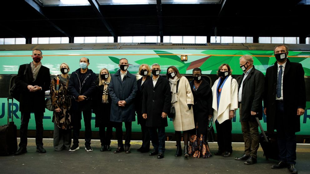 The mayors sought to underscore their environmental credentials by making the 645-kilometer (400-mile) journey from London to Glasgow by rail. The electric train they traveled on generates about seven times less greenhouse gas emissions per passenger than flying.