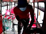 In footage posted on social media, the armed robber is seen sitting at the front of the bus directly behind the driver.