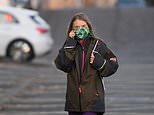 Greta, who is in Glasgow to raise climate change awareness as the COP26 summit gets underway, chatted on the phone as she arrived at the meeting wearing purple trousers, a green waterproof jacket, and a colourful green face mask.