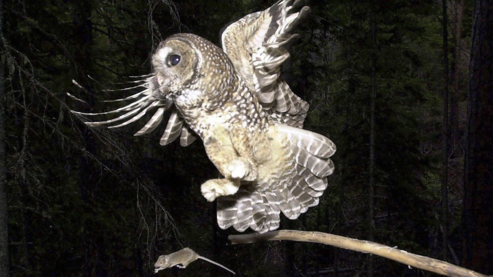 Biologists beginning in 2009 studied the impact of barred owl removal in areas of northern California, Oregon and Washington with the smaller spotted owl. The pilot program, which wrapped up in August, showed spotted owl numbers stabilized when barred owl numbers were reduced. They continued to decline in areas without the removals.