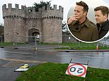 Weather woes: The castle had been taking a weather battering with gale force winds and driving rain bringing down tree branches and safety signs.