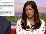 Letter: BBC News presenter Tina Daheley published a letter she wrote to an unnamed restaurant on Twitter on Wednesday (pictured presenting BBC Breakfast with colleague Jon Kay)