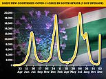Data from the National Institute for Communicable Diseases (NICD) shows 11,535 people in South Africa tested positive in the last 24 hours — increasing five-fold in a week — reflecting a positivity rate of 22.4 per cent. South Africa has recorded 2.9million cases since the beginning of the pandemic. Meanwhile, Covid deaths have fallen from from 114 last Wednesday to 44 today, marking a 61 per cent fall. The vast majority of cases are concentrated in Gauteng, the epicentre of the outbreak, in the north east
