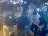 Moment policeman saves choking man’s life with Heimlich Manoeuvre after the lone diner suddenly slumps over a restaurant table in Brazil