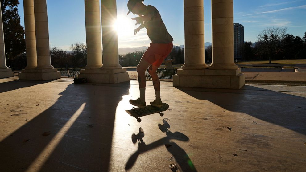 Derek Greenough moved to Denver a few months ago and immediately bought a snowboard with the hope of soon hitting the slopes. But on Wednesday, he was enjoying the warm weather in a city park.