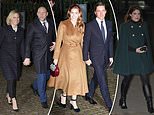 The group were also joined by the Countess of Wessex, 55, at the service, as well as the Duchess of Cambridge’s parents Carole and Michael Middleton, as well as her siblings James and Pippa. Pictured, Beatrice and her husband Edoardo