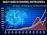 Professor Christina Pagel says cases in Guateng are increasing slower than their previous 25% a day pace She says infections over the last four days have dipped below this trend, meaning cases may be rounding off WHO says ‘the number of admissions is very low’ in South Africa compared to during country’s Delta wave