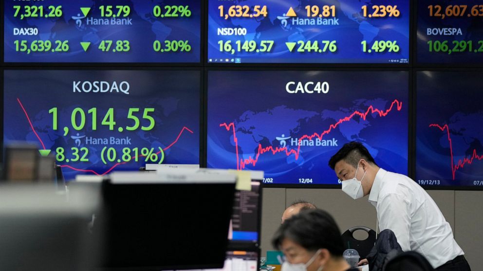 The Kospi in Seoul gave up 0.6% to 3,009.85 and Sydney’s S&P-ASX 200 was 0.3% lower at 7,359.10.
