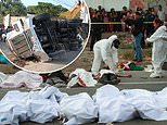 Dozens of bodies arranged in rows covered in white sheets were photographed laid across a roadway in the southern Mexican state of Chiapas On Thursday. At least 54 further people were wounded, 21 seriously, in the horror smash.