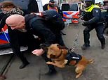 Dutch lockdown protesters are MAULED by police dogs and hit with batons