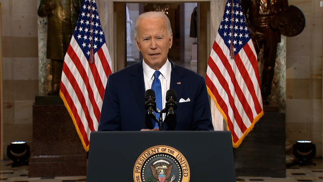 “For the first time in our history, a President had not just lost an election. He tried to prevent the peaceful transfer of power as a violent mob reached the Capitol,” Biden said in a speech from the US Capitol that lasted just under 30 minutes. “But they failed. They failed. And on this day of remembrance, we must make sure that such an attack never, never happens again.”