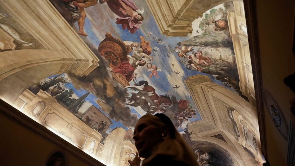 It was commissioned in 1597 by a diplomat and patron of the arts who asked the then-young painter to decorate the ceiling of the small room being used as an alchemy workshop. The 2.75-meter (9-foot) wide mural, which depicts Jupiter, Pluto and Neptune, is unusual: It’s not a fresco, but rather oil on plaster, and represents the only ceiling mural that Caravaggio is known to have made.