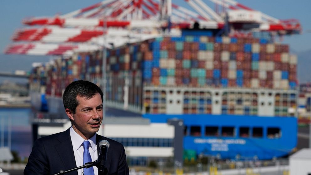 There are three specific projects tied to reducing supply bottlenecks by making it easier to transport goods, according to a White House fact sheet. U.S. ports have struggled to manage the inflow of container ships and move containers onto trucks as the economy recovered from the pandemic, resulting in delays in sending goods to consumers and higher prices.