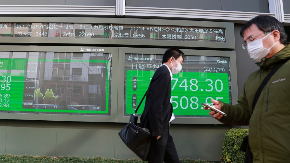 The Nikkei 225 in Tokyo gained 0.4% to 27,574.43 after December exports rose 17.5% over a year earlier. Growth in auto exports accelerated to 17.5% from November’s 4.1%.