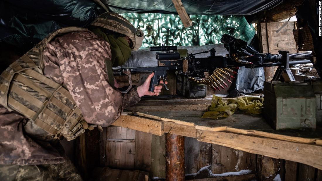 Ukrainian soldiers keep watch at their front-line trench position on Friday, January 21.