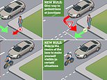 From next week, the Highway Code insists motorists must give way to cyclists and pedestrians at junctionsNew ‘hierarchy of road users’ means drivers will have more responsibility for safety of vulnerable road usersThe new code rules state that cyclists should also ride in the middle of the road in certain circumstancesCyclists and drivers must also give way to pedestrians who are crossing or waiting to cross at junctions