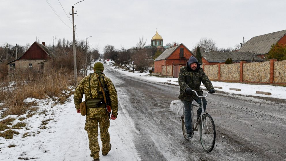 “There is practically no one here, because everything is broken. There is light, gas, water supply, but there is no life,” said Vladimir, a local man who refused to give his last name. He estimated Ukrainian troops were about a kilometer (half-mile) away, and he wanted them gone so people could decide their own fates.