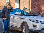 A Russel Choudary, 40, looks on at the remains of his £25,000 Range Rover in South Shields, Tyneside after debris collapsed on top of the vehicle following strong winds brought by Storm Malik