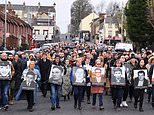 People hold pictures of the victims of ‘Bloody Sunday’ as they retrace the steps of the original 1972 civil rights march, in a walk of remembrance to mark the 50th anniversary of ‘Bloody Sunday’