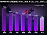 Home Office statistics show that as few as 5 per cent of burglaries are solvedIt comes after around 268,000 were committed in the most recent 12 monthsThe figures are a fall from the previous period of 9.4 per cent being solved