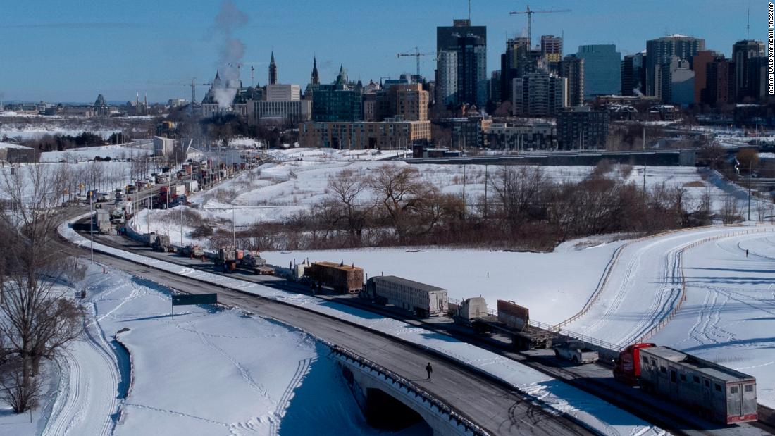 Truckers and protesters against Covid-19 mandates block a border crossing and flood Canada’s capital