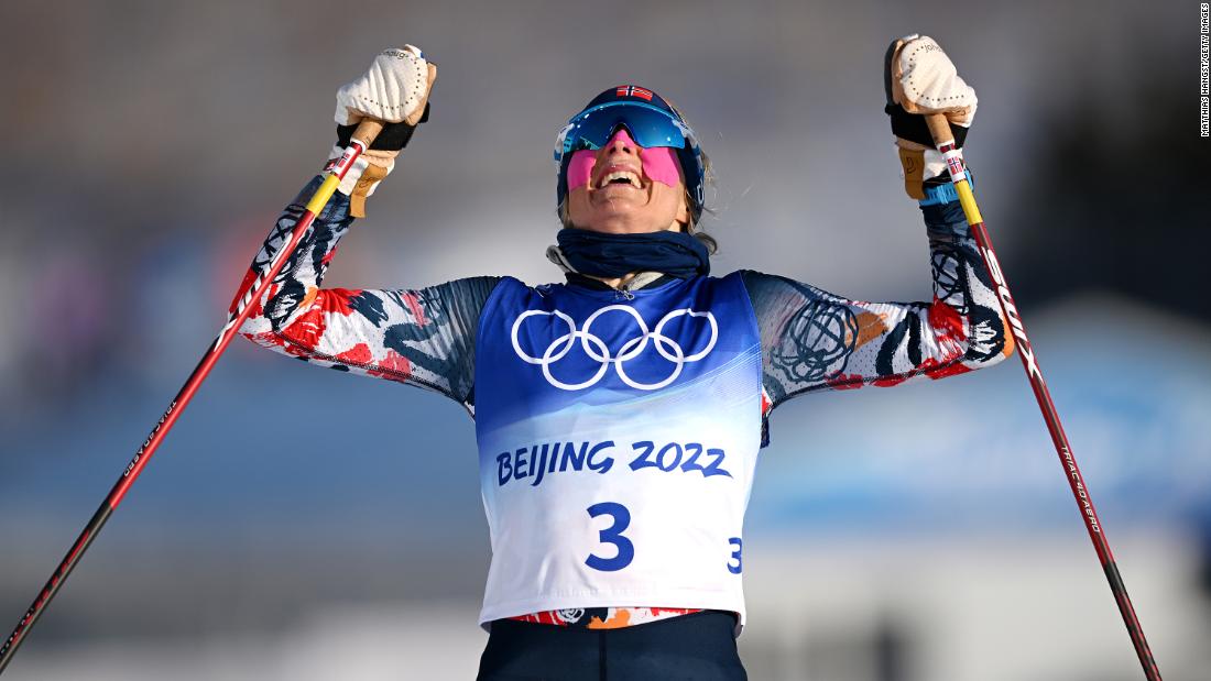 Therese Johaug won the first gold of Beijing 2022 with a dominant victory in the 15-kilometer cross-country skiing race in the women’s skiathlon, the Norwegian cruising to her first individual Olympic title in 44 minutes and 13.7 seconds.