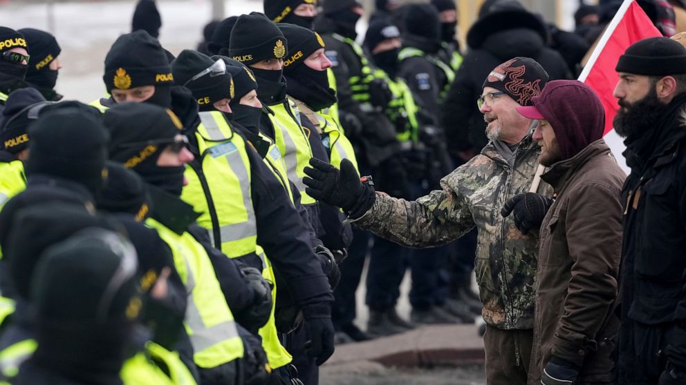 WINDSOR, Ontario — Protesters opposed to COVID-19 vaccine mandates and other restrictions withdrew their vehicles from a key U.S.-Canadian border bridge Saturday though access remained blocked while other demonstrations ramped up in cities across Canada, including the capital, where police said they were awaiting more officers before ending what they described as an illegal occupation.