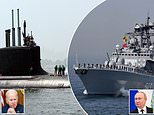 The US Navy has denied claims one of its Virginia-class nuclear submarines (left) was chased out of Russian waters by the Kremlin’s Marshal Shaposhnikov (pictured right)