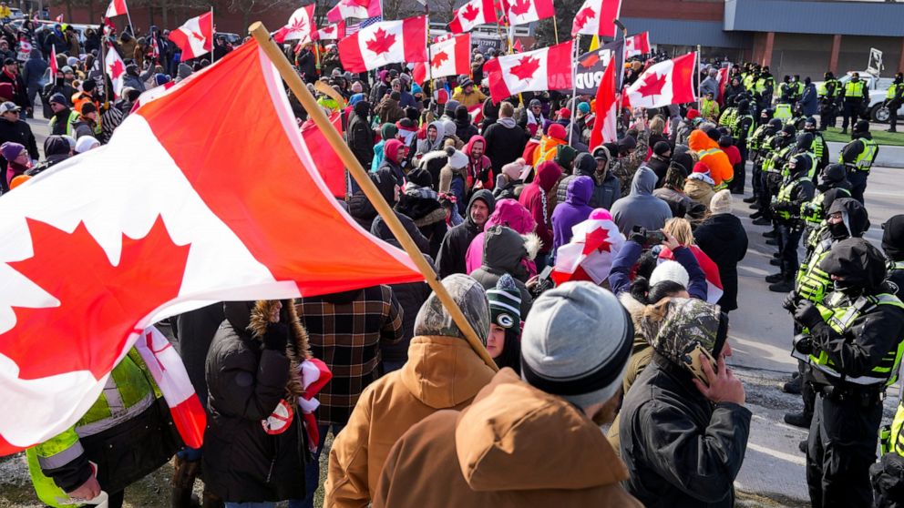 WINDSOR, Ontario — Police moved in to clear and arrest the remaining protesters near the busiest U.S.-Canadian border crossing Sunday, ending a demonstration against COVID-19 restrictions that has hurt the economy of both nations even as they held back from a crackdown on a larger protest in the capital, Ottawa.