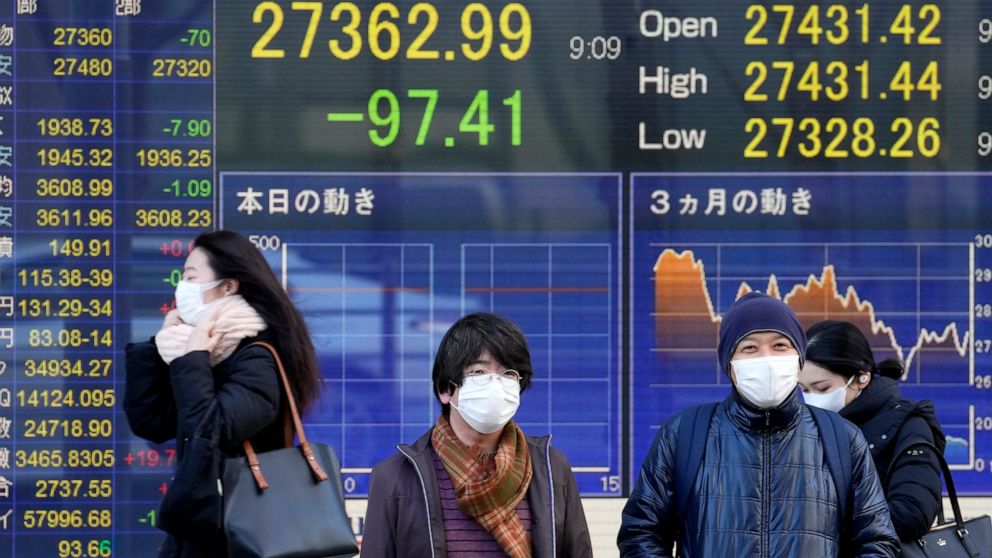 The Nikkei 225 in Tokyo lost 0.8% to 27,232.87 gave up 0.8% to 27,232.87 after January exports rose by 9.6% over a year earlier, well below expectations.