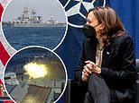 ‘We remain of course supportive of diplomacy as it relates to the dialogue and discussions we’ve had with Russia, but we are also committed to taking corrective actions to ensure there will be severe consequences in terms of the sanctions we have discussed, and we know the alliance is strong in that regard,’ Harris said as she met with NATO Secretary General Jens Stoltenberg.