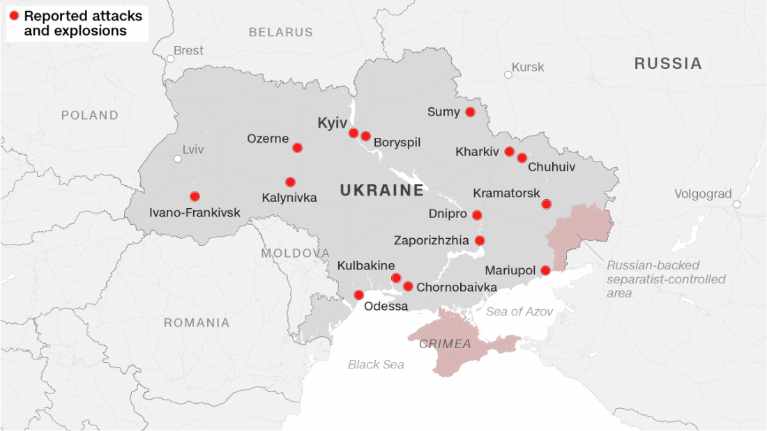 Some of those forces began pouring across the border, crossing into Ukraine from the north in Belarus and to the south from Crimea, according to the Ukrainian State Border Service. Elsewhere, explosions rang out in multiple cities, including the capital Kyiv.
