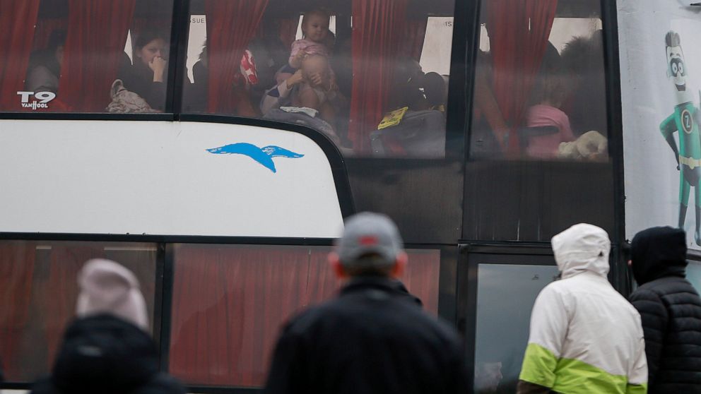 In Poland, the country that has reported the most arrivals, trains continued to bring refugees into the border town of Przemysl on Monday. In winter coats to protect them against near-freezing temperatures, many carried small suitcases as they lined up at the platform to exit the station.