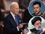 ‘He’ll never gain the hearts and souls of the Iranian people’: Biden confuses Ukraine and IRAN during his State of the Union address – while Kamala is seen mouthing the correct word right behind him
