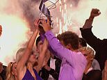 Elated: The dancer broke down in tears as he joined his professional partner Karina Manta lifting the glittering trophy, after wowing viewers with his jaw-dropping version of the iconic Bolero skate