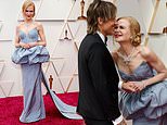 Nicole Kidman looks stunning as she channels Old Hollywood in a pale blue strapless peplum gown at the Oscars as she puts on a VERY affectionate display with Keith Urban on the red carpet