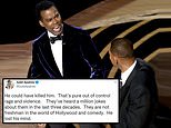 ‘That’s pure out of control rage and violence’: Hollywood stars condemn Will Smith as Twitter erupts over THAT shocking Chris Rock slap during live Academy Awards ceremony
