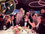 The picture was tweeted by Vanity Fair fashion writer Derek Blasberg, who wrote: ‘Meanwhile, this is everybody at my table at the Vanity Fair Oscar dinner manically googling WTF Will Smith just said to Chris Rock.’