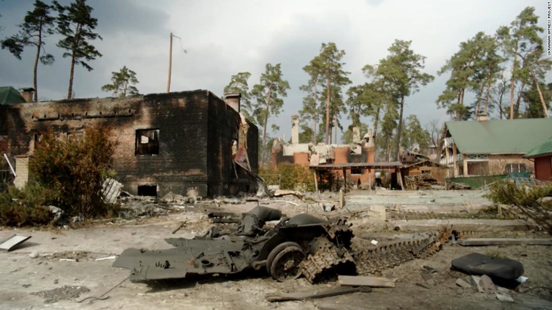 The footage taken by the Ukrainian Witness Project and provided to CNN shows the devastation of the city in Kyiv’s suburbs