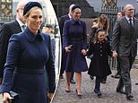 Matching with Mummy: Zara and her mini-me daughter Mia, eight, are elegant in navy coats as they’re joined by Mike Tindall at Westminster Abbey for Prince Philip’s memorial service