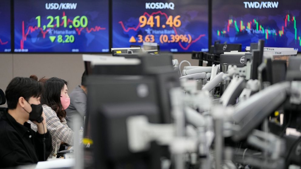 The Nikkei 225 in Tokyo shed 0.2% to 27,977.98 while the Kospi in Seoul gained 0.6% to 2,761.78.