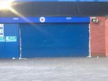 Sky Sports’ Anthony Joseph tweeted: ‘Expanding foam was sprayed around the entrances to the turnstiles at the Broomloan end.’
