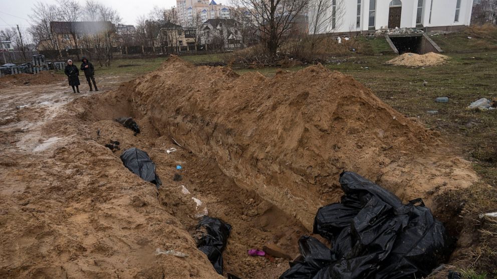 Ukrainian officials said earlier Sunday that scores of killed civilians have been found on the streets of Kyiv’ suburbs of Bucha, Irpin and Hostomel after the withdrawal of Russian troops. They said that some of the victims were shot in the head and had their hands bound.