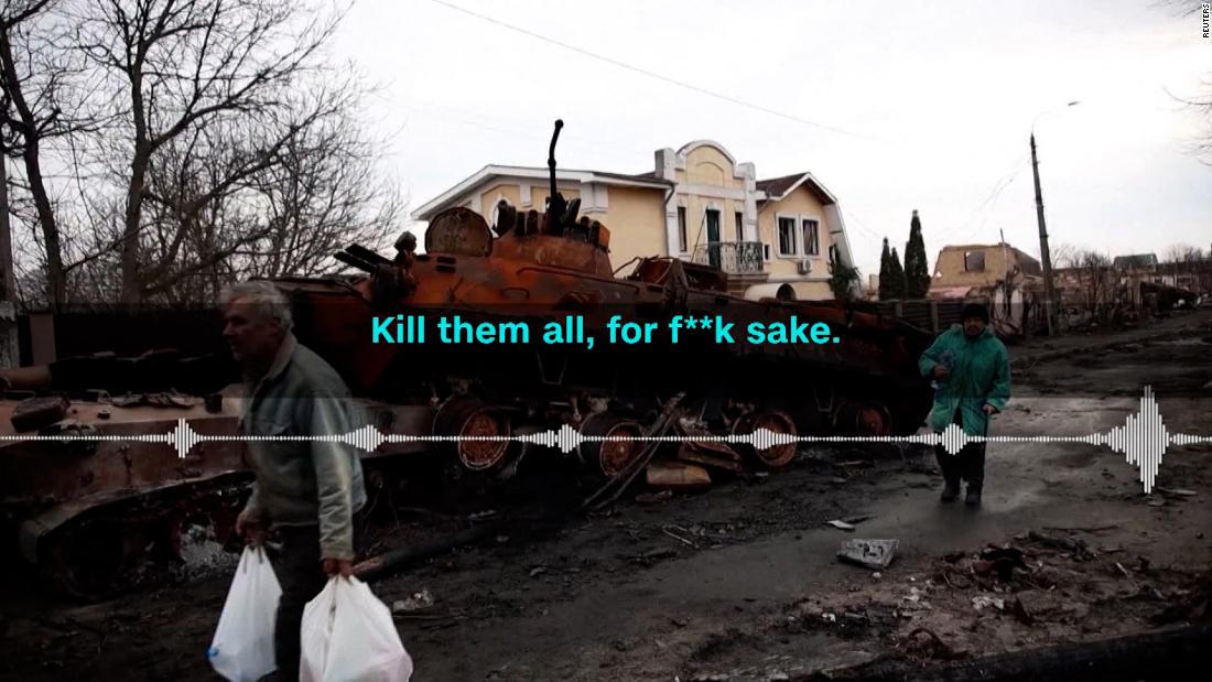 ‘);$vidEndSlate.removeClass(‘video__end-slate–inactive’).addClass(‘video__end-slate–active’);}};CNN.autoPlayVideoExist = (CNN.autoPlayVideoExist === true) ? true : false;var configObj = {thumb: ‘none’,video: ‘world/2022/04/08/audio-intercepts-russian-soldiers-chance-vpx.cnn’,width: ‘100%’,height: ‘100%’,section: ‘domestic’,profile: ‘expansion’,network: ‘cnn’,markupId: ‘large-media_0’,adsection: ‘const-video-leaf’,frameWidth: ‘100%’,frameHeight: ‘100%’,posterImageOverride: {“mini”:{“width”:220,”type”:”jpg”,”uri”:”//cdn.cnn.com/cnnnext/dam/assets/220408170737-audio-small-169.jpg”,”height”:124},”xsmall”:{“width”:307,”type”:”jpg”,”uri”:”//cdn.cnn.com/cnnnext/dam/assets/220408170737-audio-medium-plus-169.jpg”,”height”:173},”small”:{“width”:460,”type”:”jpg”,”uri”:”//cdn.cnn.com/cnnnext/dam/assets/220408170737-audio-large-169.jpg”,”height”:259},”medium”:{“width”:780,”type”:”jpg”,”uri”:”//cdn.cnn.com/cnnnext/dam/assets/220408170737-audio-exlarge-169.jpg”,”height”:438},”large”:{“width”:1100,”type”:”jpg”,”uri”:”//cdn.cnn.com/cnnnext/dam/assets/220408170737-audio-super-169.jpg”,”height”:619},”full16x9″:{“width”:1600,”type”:”jpg”,”uri”:”//cdn.cnn.com/cnnnext/dam/assets/220408170737-audio-full-169.jpg”,”height”:900},”mini1x1″:{“width”:120,”type”:”jpg”,”uri”:”//cdn.cnn.com/cnnnext/dam/assets/220408170737-audio-small-11.jpg”,”height”:120}}},autoStartVideo = false,isVideoReplayClicked = false,callbackObj,containerEl,currentVideoCollection = [{“descriptionPlainText”:”Ukrainian officials say there is new audio from intercepted radio traffic revealing Russian soldiers killing and raping civilians. CNN’s Matthew Chance reports.”,”imageUrl”:”//cdn.cnn.com/cnnnext/dam/assets/220408170737-audio-large-169.jpg”,”title”:”‘Kill them all, for f**k sake’: Shocking intercepted audio reveals conversation between Russian soldiers”,”videoCMSUrl”:”/videos/world/2022/04/08/audio-intercepts-russian-soldiers-chance-vpx.cnn”,”videoLeafUrl”:”/videos/world/2022/04/08/audio-intercepts-russian-soldiers-chance-vpx.cnn”,”videoId”:”world/2022/04/08/audio-intercepts-russian-soldiers-chance-vpx.cnn”,”videoUrl”:”/videos/world/2022/04/08/audio-intercepts-russian-soldiers-chance-vpx.cnn”,”surrogateKey”:”video_4EADE515-8CF3-56B4-5103-0ADC16D5252D”},{“descriptionPlainText”:”Drones are playing a key role in Ukraine’s counter offensives against Russia’s invasion. One is proving so effective that Ukrainian forces are singing its praises, literally. CNN’s Jomana Karadsheh has the exclusive report.”,”imageUrl”:”//cdn.cnn.com/cnnnext/dam/assets/220408005519-bayraktar-drone-overhead-karadsheh-large-169.jpg”,”title”:”Turkish drone is so effective, Ukrainian troops are singing about it”,”videoCMSUrl”:”/video/data/3.0/video/world/2022/04/08/bayraktar-drone-ukraine-turkey-karadsheh-pkg-intl-ovn-vpx.cnn/index.xml”,”videoLeafUrl”:”/videos/world/2022/04/08/bayraktar-drone-ukraine-turkey-karadsheh-pkg-intl-ovn-vpx.cnn”,”videoId”:”world/2022/04/08/bayraktar-drone-ukraine-turkey-karadsheh-pkg-intl-ovn-vpx.cnn”,”videoUrl”:”/videos/world/2022/04/08/bayraktar-drone-ukraine-turkey-karadsheh-pkg-intl-ovn-vpx.cnn/video/playlists/russia-ukraine-military-conflict/”,”surrogateKey”:”video_E1087532-B76D-DD5C-D6A5-0773F8F0EF7E”},{“descriptionPlainText”:”Kremlin spokesman Dmitry Peskov briefly admitted that Russia had suffered a “significant” loss of its troops in Ukraine, calling the casualties “a huge tragedy” for the country in an interview with Sky News. CNN’s Nic Robertson reports.”,”imageUrl”:”//cdn.cnn.com/cnnnext/dam/assets/220407205231-peskov-thumb-sky-news-without-banners-vpx-large-169.jpg”,”title”:”‘Huge tragedy for us’: Kremlin admits ‘significant’ Russian troop losses in Ukraine”,”videoCMSUrl”:”/video/data/3.0/video/world/2022/04/07/dmitry-peskov-kremlin-admits-significant-losses-ukraine-tsr-sot-vpx.cnn/index.xml”,”videoLeafUrl”:”/videos/world/2022/04/07/dmitry-peskov-kremlin-admits-significant-losses-ukraine-tsr-sot-vpx.cnn”,”videoId”:”world/2022/04/07/dmitry-peskov-kremlin-admits-significant-losses-ukraine-tsr-sot-vpx.cnn”,”videoUrl”:”/videos/world/2022/04/07/dmitry-peskov-kremlin-admits-significant-losses-ukraine-tsr-sot-vpx.cnn/video/playlists/russia-ukraine-military-conflict/”,”surrogateKey”:”video_48BB8802-F148-027A-DD8B-061837E8DAC0″},{“descriptionPlainText”:”Drone footage appears to have captured the moment a Ukrainian mother was gunned down by Russian soldiers while cycling home. CNN’s Phil Black reports.”,”imageUrl”:”//cdn.cnn.com/cnnnext/dam/assets/220406135256-03-irina-bucha-ukraine-large-169.jpg”,”title”:”Murdered Ukrainian mother identified by her distinctive nails”,”videoCMSUrl”:”/video/data/3.0/video/world/2022/04/07/ukrainian-mother-cycling-home-manicure-black-pkg-lead-vpx.cnn/index.xml”,”videoLeafUrl”:”/videos/world/2022/04/07/ukrainian-mother-cycling-home-manicure-black-pkg-lead-vpx.cnn”,”videoId”:”world/2022/04/07/ukrainian-mother-cycling-home-manicure-black-pkg-lead-vpx.cnn”,”videoUrl”:”/videos/world/2022/04/07/ukrainian-mother-cycling-home-manicure-black-pkg-lead-vpx.cnn/video/playlists/russia-ukraine-military-conflict/”,”surrogateKey”:”video_B2CBC7DF-C9E4-DBAA-94C8-062EFFB38904″},{“descriptionPlainText”:”CNN’s Clarissa Ward speaks to survivors and tours the destruction left behind by Russian forces in Chernihiv, Ukraine.”,”imageUrl”:”//cdn.cnn.com/cnnnext/dam/assets/220407225510-graveyard-chernihiv-ward-dnt-thumb-vpx-large-169.jpg”,”title”:”CNN gets look at destruction in Chern