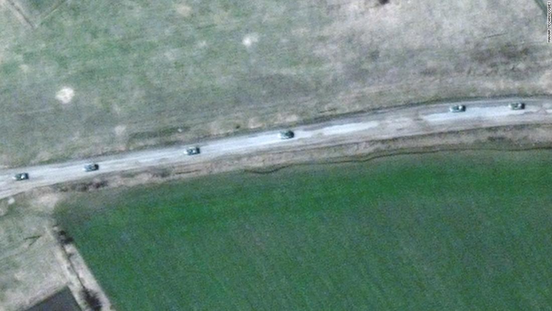 Satellite images show a military convoy in the east, where Ukraine’s defense intelligence chief warns of a major assault by Russian troops