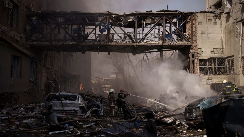 The southern Mykolaiv region was battered Friday and Saturday. According to the presidential office, airstrikes Friday killed five and wounded 15. The head of regional legislature, Hanna Zamazeyeva, said Saturday that 39 people have been wounded in the past 24 hours.