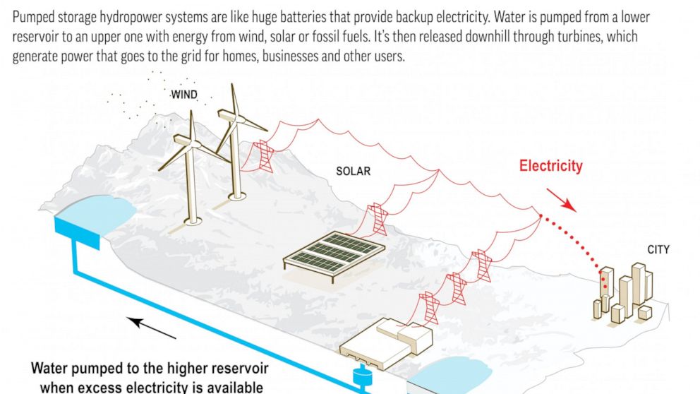 Supporters call these systems “the world’s largest batteries” because they hold vast amounts of potential energy for use when needed for the power grid.