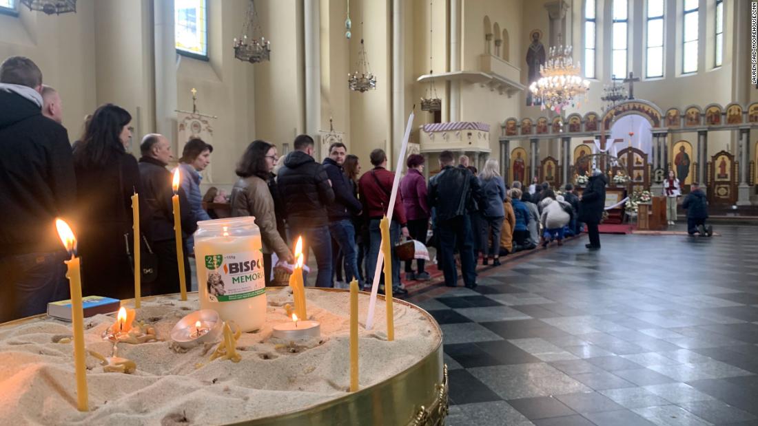 Despite concerns, residents in Lviv descended on churches in the city for blessings of protection and prayer on Saturday. At the Church of the Intercession of the Blessed Virgin, the faithful ignored the calls to stay at home and instead queued with decorated baskets of food ready to be blessed with Holy Water by parish priests.