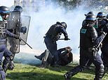 Violence erupts in Paris with 45 people arrested and eight police officers injured in May Day clashes while demonstrators attack banks and throw fireworks at a McDonald’s – as thousands protest around the world on International Workers Day