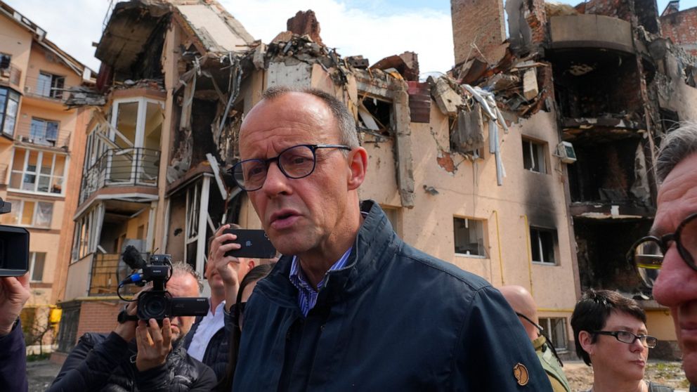Opposition leader Friedrich Merz, who heads former Chancellor Angela Merkel’s center-right Union bloc, visited the town of Irpin, on the outskirts of Kyiv, to see the destruction caused by the Russian army.
